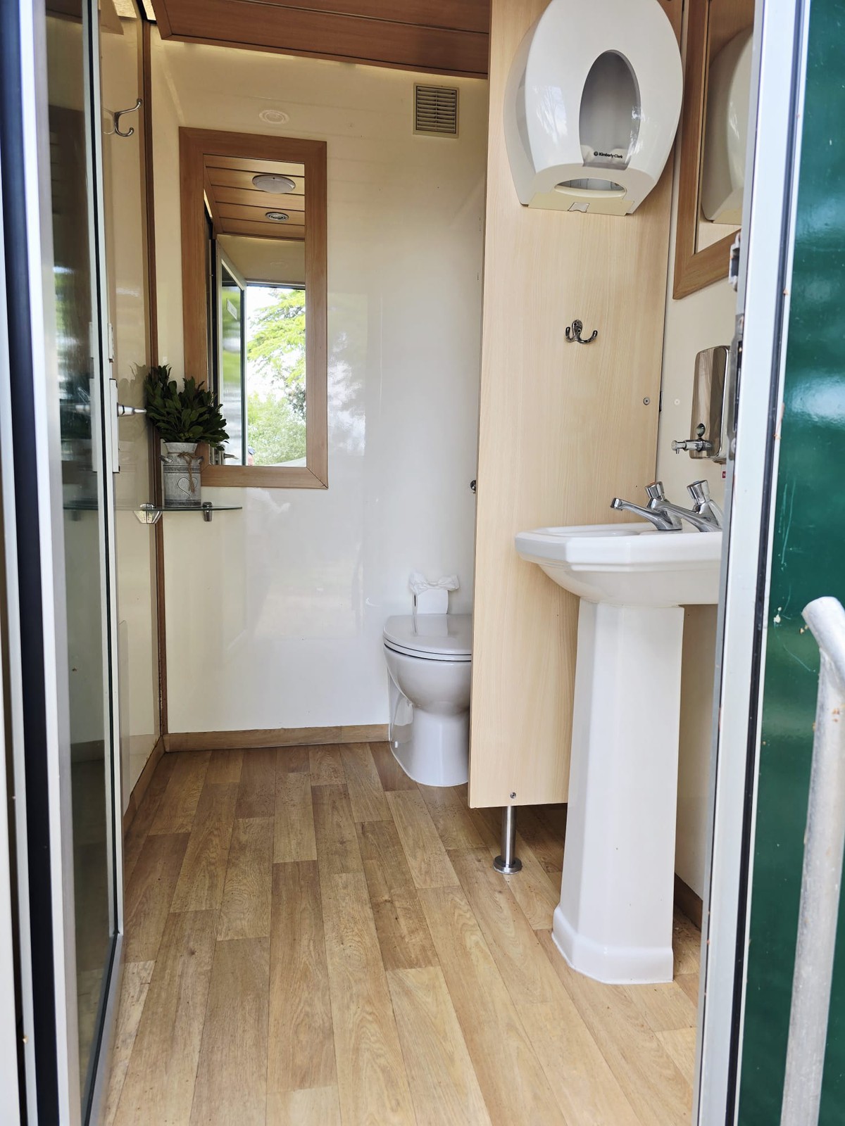 Self-contained unit that doesn’t require a mains water or drainage connection – and runs off a 13amp or 16amp power socket.Elegant wood-effect flooring and light, modern wall finishes