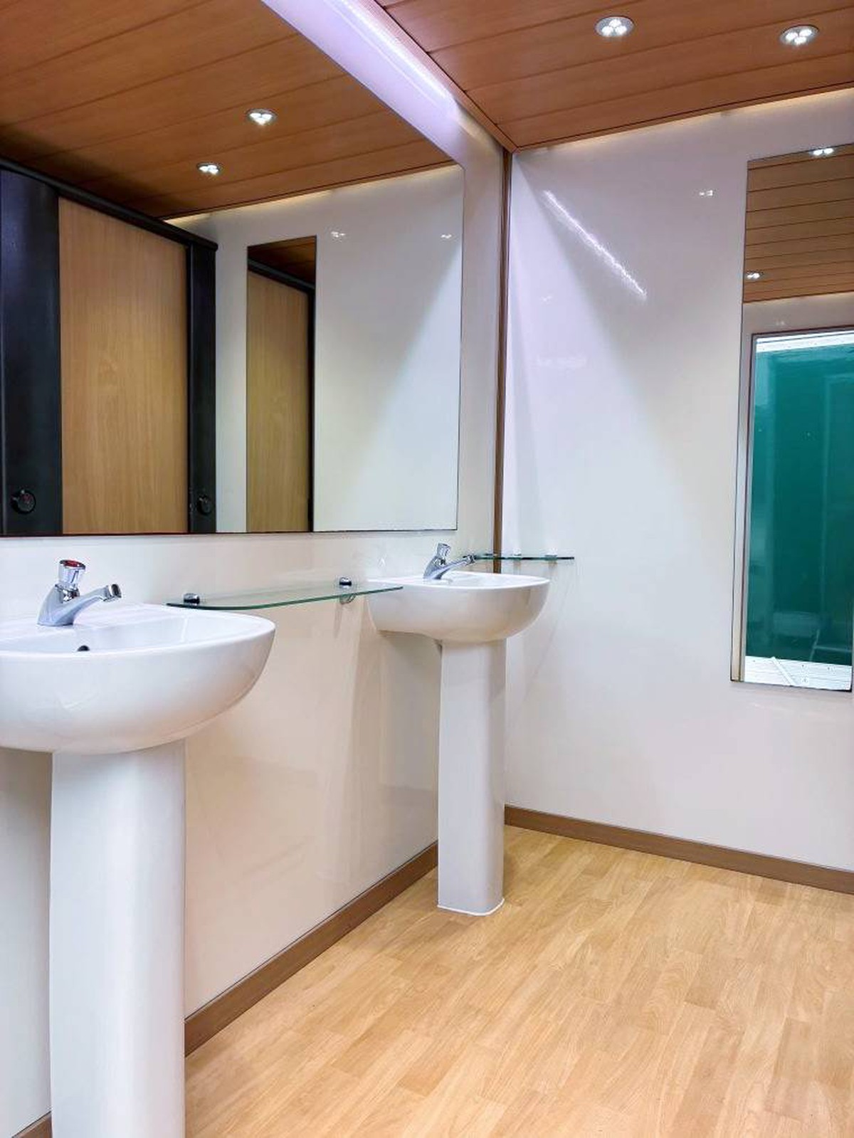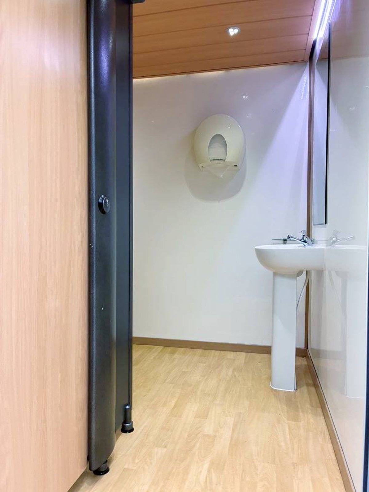 3x Ladies toilet cubicles, with 2x hand wash basins.1x Gents toilet, with 1x hand wash basin.