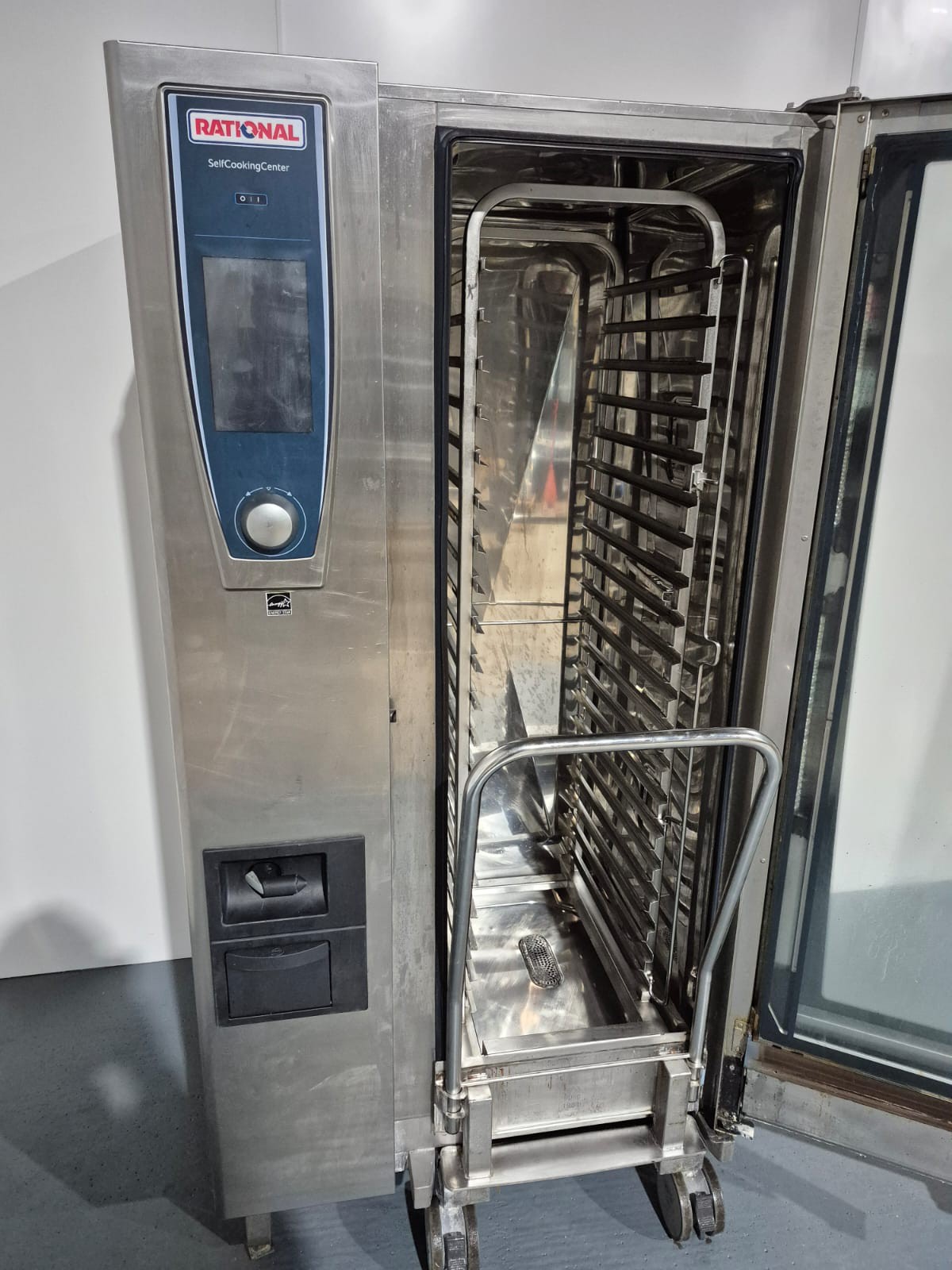 Rational SCC WE (Self Cooking Centre - White Efficiency) are considered to be one of the best and most advanced commercial combi ovens on the market and they are ideal for high-output kitchens who demand the best quality. This self-cleaning and cooking oven is designed to provide reliable and efficient results. Its limescale treatment with Care Control ensures optimal performance every time. This oven is ideal for any production kitchen or restaurant looking for a reliable and efficient cooking solution. Dry Heat features making it ideal for baking and slow roasting, and steaming for potatoes and vegetables.20 Grid models are ideal for production kitchens or busy pubs and restaurants and schools that require the larger capacity. Includes a roll in trolley for grids and trays. Care Control for boiler descaling.