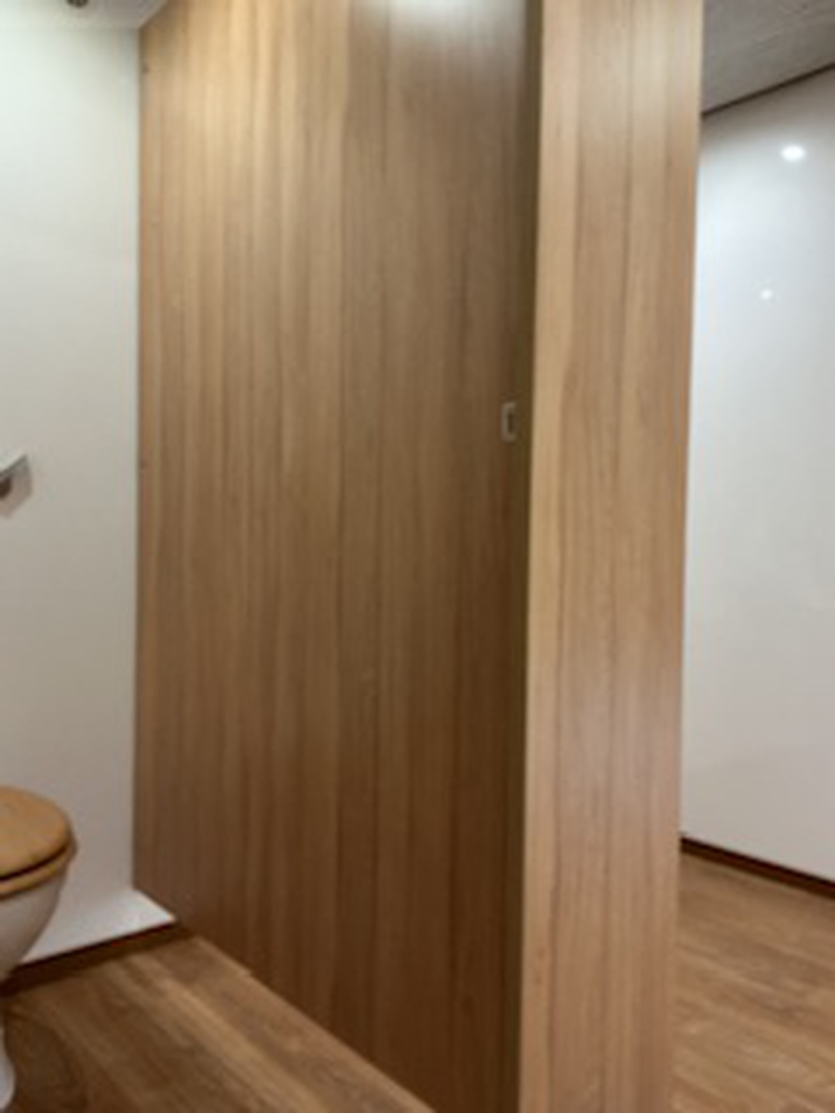 Brand new mobile toilet unit in white with stylish oak interior.Unit includes:-