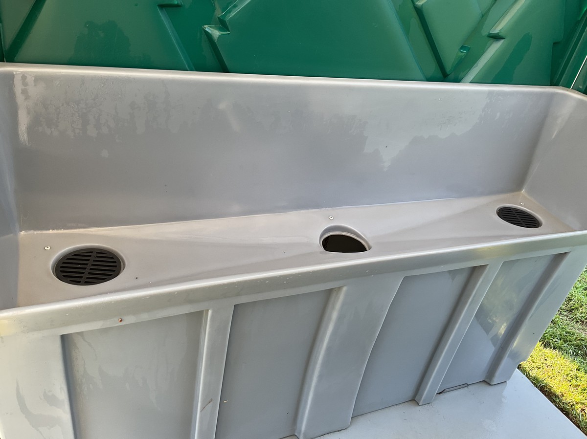 A PolyJohn open ended 6 man urinal in dark green.All in good working order.